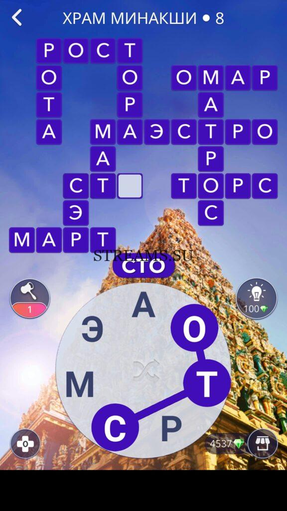 WOW ответы — Уровень 8: ХРАМ МИНАКШИ. (871 — ВОЯЖ) В этом уровне нам нужно составить слова из следующих букв: «АОТРСМЭ«. Готовы совершить кругосветное путешествие? Эта чудесная игра исполнит ваше желание! С каждым последующим уровнем, будет расти сложность заданий. Игра WOW создана в виде кроссворда, в котором нужно будет соединять буквы, чтобы получить несколько слов. Чем больше вы будете отгадывать слов, тем проще будет отгадать остальное. С помощью Words of Wonders вы сможете расширить свой словарный запас, улучшить внимательность и хорошенько прокачать свой мозг! Если вы не можете пройти один из уровней, воспользуйтесь подсказкой с нашего сайта.