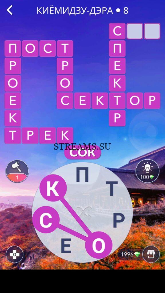 WOW ответы — Уровень 8: КИЁМИДЗУ-ДЭРА. (327 — ВОЯЖ) В этом уровне нам нужно составить слова из следующих букв: «ПТРОЕСК«. Готовы совершить кругосветное путешествие? Эта чудесная игра исполнит ваше желание! С каждым последующим уровнем, будет расти сложность заданий. Игра WOW создана в виде кроссворда, в котором нужно будет соединять буквы, чтобы получить несколько слов. Чем больше вы будете отгадывать слов, тем проще будет отгадать остальное. С помощью Words of Wonders вы сможете расширить свой словарный запас, улучшить внимательность и хорошенько прокачать свой мозг! Если вы не можете пройти один из уровней, воспользуйтесь подсказкой с нашего сайта.