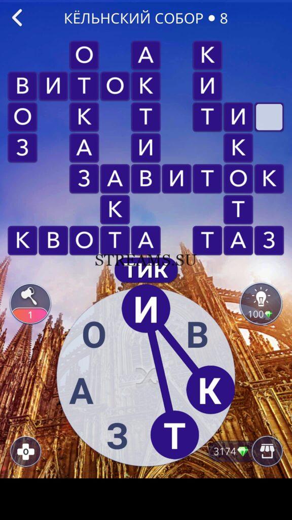 WOW ответы — Уровень 8: КЁЛЬНСКИЙ СОБОР. (599 — ВОЯЖ) В этом уровне нам нужно составить слова из следующих букв: «ВЗАКОИТ«. Готовы совершить кругосветное путешествие? Эта чудесная игра исполнит ваше желание! С каждым последующим уровнем, будет расти сложность заданий. Игра WOW создана в виде кроссворда, в котором нужно будет соединять буквы, чтобы получить несколько слов. Чем больше вы будете отгадывать слов, тем проще будет отгадать остальное. С помощью Words of Wonders вы сможете расширить свой словарный запас, улучшить внимательность и хорошенько прокачать свой мозг! Если вы не можете пройти один из уровней, воспользуйтесь подсказкой с нашего сайта.