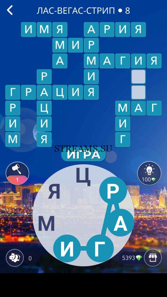WOW ответы — Уровень 8: ЛАС-ВЕГАС-СТРИП. (1015 — ВОЯЖ) В этом уровне нам нужно будет составить слова из следующих букв: «ГАЦМИРЯ«. Игра Words of Wonders напряжет вашу память и проверит словарный запас. В путешествии вокруг света игрок узнает множество новых слов. Онлайн-кроссворд развивает речь человека, наполняет ее красотой русского языка. В процессе прохождения нужно находить и выделять спрятанные термины на игровом поле. Приложение цепляет сразу, можно забыть о времени. Важно, что уровни просто не кончаются. Нужно потратить не один десяток часов, чтобы действительно решить их все. При обилии контента игра не страдает от однообразия, каждая позиция предлагает уникальные задачи и неповторяемые загадки. Ответ чуть ниже…