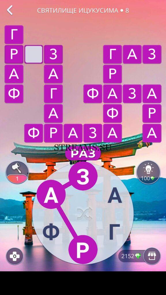 WOW ответы — Уровень 8: СВЯТИЛИЩЕ ИЦУКУСИМА. (375 — ВОЯЖ) В этом уровне нам нужно составить слова из следующих букв: «ФААГЗР«. Готовы совершить кругосветное путешествие? Эта чудесная игра исполнит ваше желание! С каждым последующим уровнем, будет расти сложность заданий. Игра WOW создана в виде кроссворда, в котором нужно будет соединять буквы, чтобы получить несколько слов. Чем больше вы будете отгадывать слов, тем проще будет отгадать остальное. С помощью Words of Wonders вы сможете расширить свой словарный запас, улучшить внимательность и хорошенько прокачать свой мозг! Если вы не можете пройти один из уровней, воспользуйтесь подсказкой с нашего сайта.