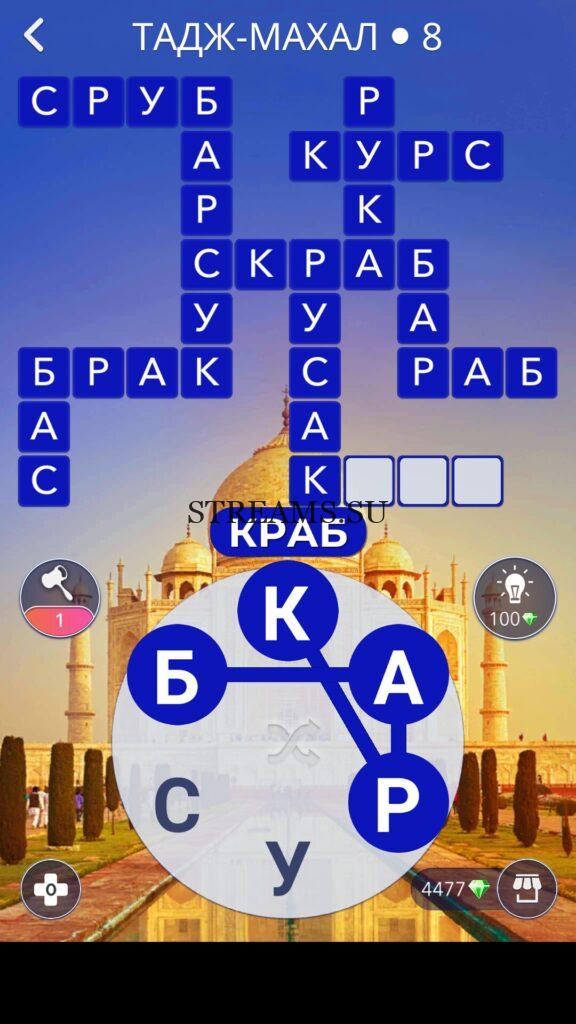 WOW ответы — Уровень 8: ТАДЖ-МАХАЛ. (855 — ВОЯЖ) В этом уровне нам нужно составить слова из следующих букв: «РКУАСБ«. Готовы совершить кругосветное путешествие? Эта чудесная игра исполнит ваше желание! С каждым последующим уровнем, будет расти сложность заданий. Игра WOW создана в виде кроссворда, в котором нужно будет соединять буквы, чтобы получить несколько слов. Чем больше вы будете отгадывать слов, тем проще будет отгадать остальное. С помощью Words of Wonders вы сможете расширить свой словарный запас, улучшить внимательность и хорошенько прокачать свой мозг! Если вы не можете пройти один из уровней, воспользуйтесь подсказкой с нашего сайта.