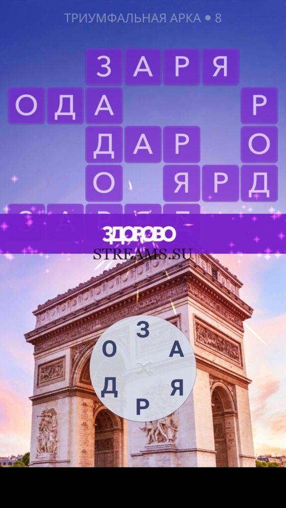 WOW ответы — Уровень 8: ТРИУМФАЛЬНАЯ АРКА. (59 — ВОЯЖ) В этом уровне нам нужно составить слова из следующих букв: «РЯДОАЗ«. Готовы совершить кругосветное путешествие? Эта чудесная игра исполнит ваше желание! С каждым последующим уровнем, будет расти сложность заданий. Игра WOW создана в виде кроссворда, в котором нужно будет соединять буквы, чтобы получить несколько слов. Чем больше вы будете отгадывать слов, тем проще будет отгадать остальное. С помощью Words of Wonders вы сможете расширить свой словарный запас, улучшить внимательность и хорошенько прокачать свой мозг! Если вы не можете пройти один из уровней, воспользуйтесь подсказкой с нашего сайта.