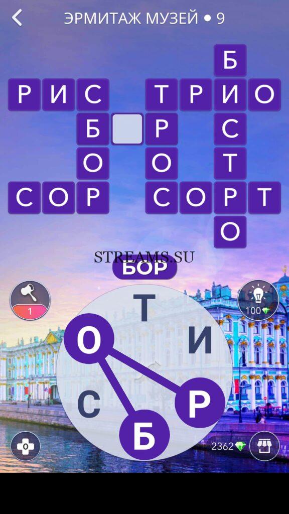 WOW ответы — Уровень 9: ЭРМИТАЖ МУЗЕЙ. (408 — ВОЯЖ) В этом уровне нам нужно составить слова из следующих букв: «РИСБТО«. Готовы совершить кругосветное путешествие? Эта чудесная игра исполнит ваше желание! С каждым последующим уровнем, будет расти сложность заданий. Игра WOW создана в виде кроссворда, в котором нужно будет соединять буквы, чтобы получить несколько слов. Чем больше вы будете отгадывать слов, тем проще будет отгадать остальное. С помощью Words of Wonders вы сможете расширить свой словарный запас, улучшить внимательность и хорошенько прокачать свой мозг! Если вы не можете пройти один из уровней, воспользуйтесь подсказкой с нашего сайта.
