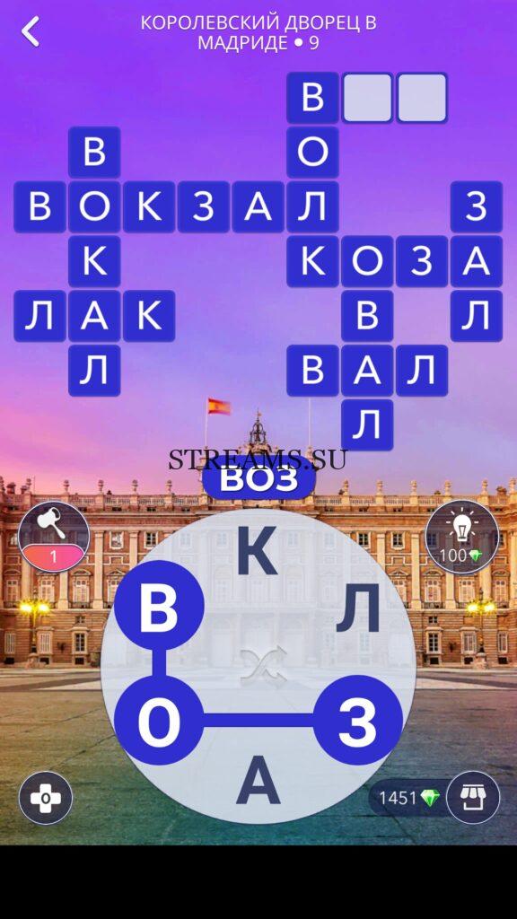 WOW ответы — Уровень 9: КОРОЛЕВСКИЙ ДВОРЕЦ В МАДРИДЕ. (216 — ВОЯЖ) В этом уровне нам нужно составить слова из следующих букв: «КЛЗАОВ«. Готовы совершить кругосветное путешествие? Эта чудесная игра исполнит ваше желание! С каждым последующим уровнем, будет расти сложность заданий. Игра WOW создана в виде кроссворда, в котором нужно будет соединять буквы, чтобы получить несколько слов. Чем больше вы будете отгадывать слов, тем проще будет отгадать остальное. С помощью Words of Wonders вы сможете расширить свой словарный запас, улучшить внимательность и хорошенько прокачать свой мозг! Если вы не можете пройти один из уровней, воспользуйтесь подсказкой с нашего сайта.