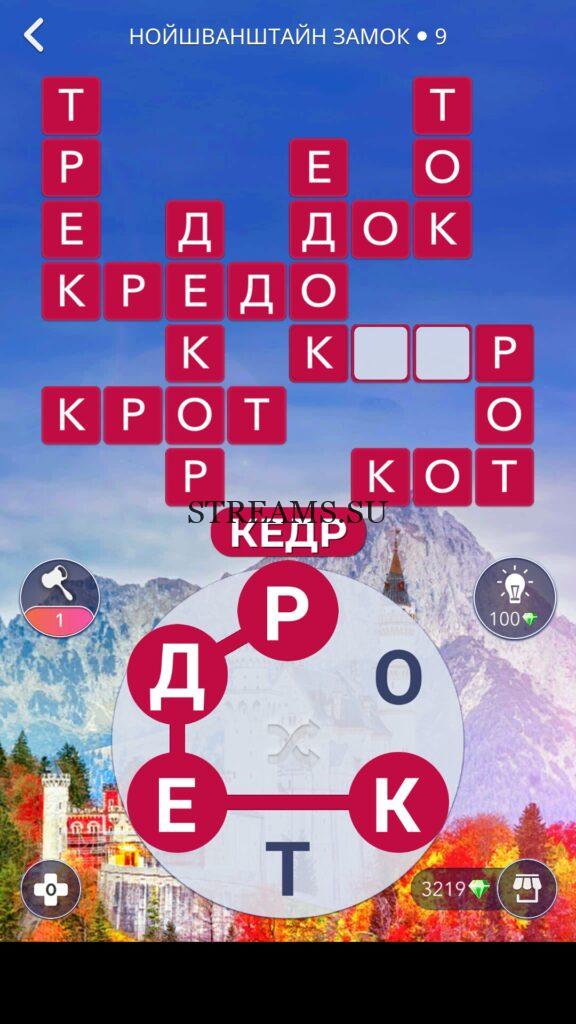 WOW ответы — Уровень 9: НОЙШВАНШТАЙН ЗАМОК. (616 — ВОЯЖ) В этом уровне нам нужно составить слова из следующих букв: «РОКТЕД«. Готовы совершить кругосветное путешествие? Эта чудесная игра исполнит ваше желание! С каждым последующим уровнем, будет расти сложность заданий. Игра WOW создана в виде кроссворда, в котором нужно будет соединять буквы, чтобы получить несколько слов. Чем больше вы будете отгадывать слов, тем проще будет отгадать остальное. С помощью Words of Wonders вы сможете расширить свой словарный запас, улучшить внимательность и хорошенько прокачать свой мозг! Если вы не можете пройти один из уровней, воспользуйтесь подсказкой с нашего сайта.