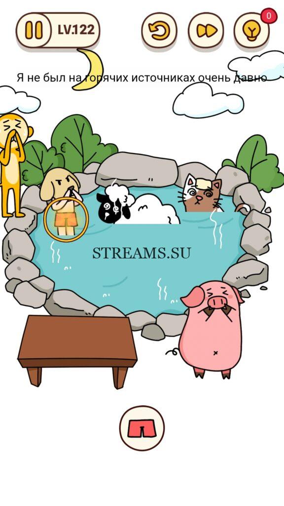 Я не был на горячих источниках очень давно. Уровень 122 — Brain Find– уникальная игра в жанре «головоломка», ответ находится чуть ниже. Она имеет множество уровней и подуровней, которые весело проходить, без особых усилий и траты нервов. Игра нравится многим пользователям из-за приятного музыкального ряда, сопровождающегося весь игровой процесс. Тонко выполненной анимации и красивой графики, над которой поработали разработчики и вложили душу. Уникальность проекта состоит в том, что можно поворачивать экран на некоторых заданиях, увеличивать громкость динамика. То есть, всецело взаимодействовать не только с дисплеем, но и со всем мобильным устройством. На данный момент таких игр мало и не все они доступны в бесплатной версии! Brain Find переведена на русский язык. На нашем сайте, можно получить подсказки, если не получается пройти дальше.