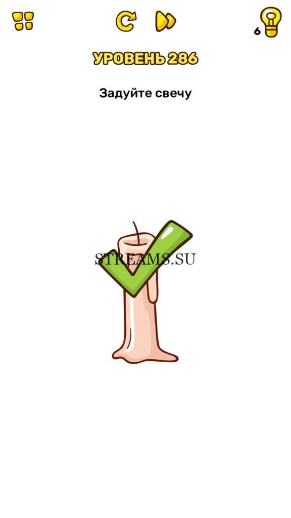 Задуйте свечу. Уровень 286 — Brain Blow: Тест на гениальность — Ответ на этот уровень находится под фото. Очередная игра от популярных разработчиков головоломок CASUAL AZUR GAMES. Если вы хотите взорвать свой мозг и развить навыки нестандартного мышления, тогда игра Брейн Блоу определенно вам понравится. Если не получается решить задание, то попробуйте включить нестандартное мышление, тряхнуть телефон, погладить его или использовать больше пальцев. Эта игра способна развить в вас навыки следопыта, креативность и прокачать ваш IQ. Но, а если все-же не получается пройти уровень, найдите правильное решение на нашем сайте.