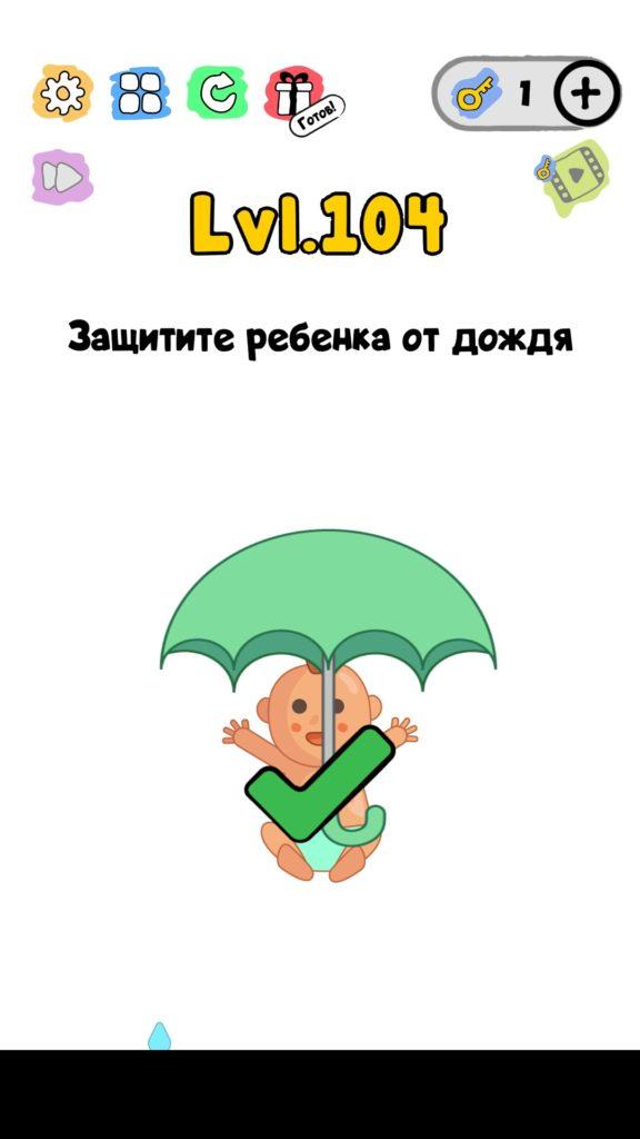 Защитите ребенка от дождя. 104 уровень Trick Me: логические головоломки — Это игра созданная в виде викторины. Каждый новый уровень отличается от предыдущего, что делает игровой процесс затягивающим и интересным. Если ты хочешь узнать насколько ты умный, тогда эта игра точно для тебя! Trick Me поможет тебе развить нестандартное мышление, и повысить свой IQ. В этой игре уже есть 236 уровней, которые постоянно обновляются и пополняются. Но если застрял на одном или нескольких уровнях, и не можешь их пройти, то наш сайт придет на помощь, у нас есть все ответы на уровни игры Trick Me.