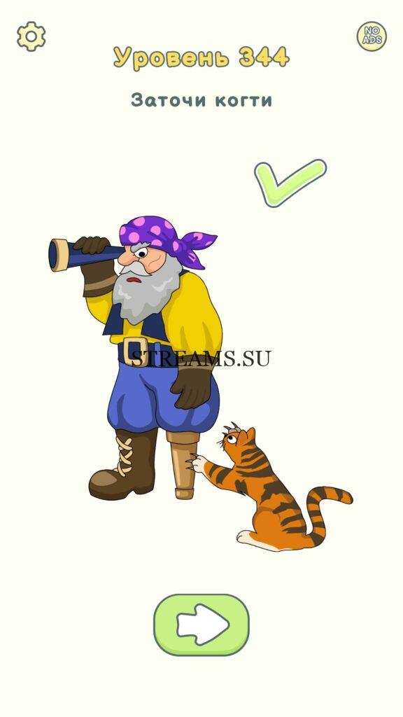 Заточи когти. Уровень 344 — DOP 2: Delete One Part. Вы готовы к продолжению первой части игры? Тогда вперед! Эта игра DOP 2 (Расшифровка: Delete One Part) , которая отличается от первой части тем, что здесь нам нужно будет не дорисовывать предметы, а удалять или стирать их. Вас ждет множество хитроумных и интересных уровней. На первом этапе нам будут подсказывать, что нужно удали, но потом становится всё тяжелее и тяжелее решать головоломки. Разработчики постарались сделать игру привлекательной. Геймплей заставит вас просидеть за игрой очень долго. Красивая графика исполнения. Тренировка мозга и многое другое, всё это ждет нас в замечательной головоломке DOP 2. Если не получается пройти уровень, или зашли в тупик, то вы можете найти ответ на любой уровень на нашем сайте STREAMS.SU! Ответ на этот уровень находиться чуть ниже..