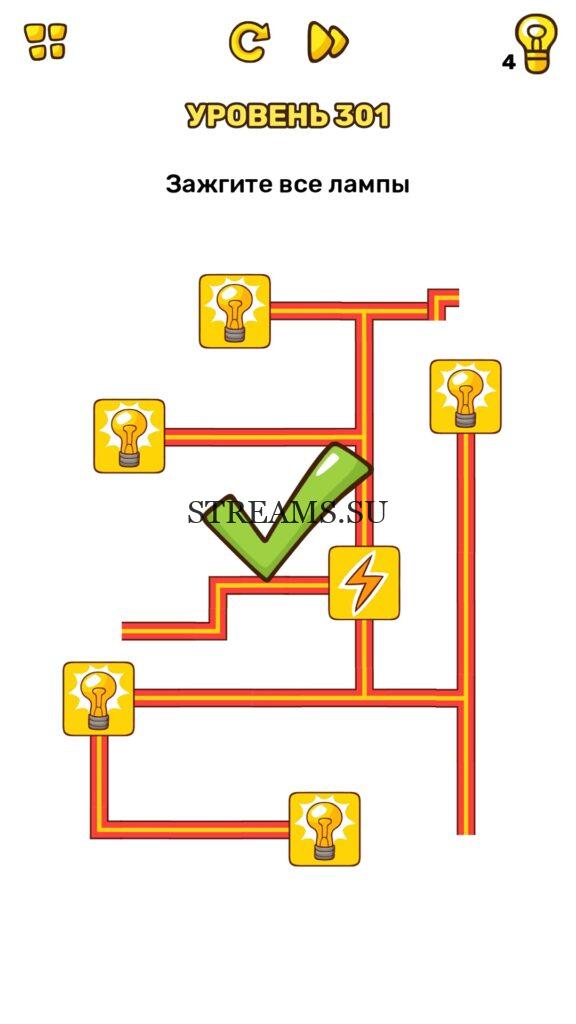Зажгите все лампы. Уровень 301 — Brain Blow: Тест на гениальность — Ответ на этот уровень находится под фото. Очередная игра от популярных разработчиков головоломок CASUAL AZUR GAMES. Если вы хотите взорвать свой мозг и развить навыки нестандартного мышления, тогда игра Брейн Блоу определенно вам понравится. Если не получается решить задание, то попробуйте включить нестандартное мышление, тряхнуть телефон, погладить его или использовать больше пальцев. Эта игра способна развить в вас навыки следопыта, креативность и прокачать ваш IQ. Но, а если все-же не получается пройти уровень, найдите правильное решение на нашем сайте.