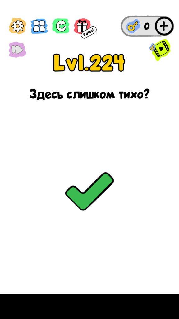 Здесь слишком тихо? 224 уровень Trick Me: логические головоломки — Это игра созданная в виде викторины. Каждый новый уровень отличается от предыдущего, что делает игровой процесс затягивающим и интересным. Если ты хочешь узнать насколько ты умный, тогда эта игра точно для тебя! Trick Me поможет тебе развить нестандартное мышление, и повысить свой IQ. В этой игре уже есть 236 уровней, которые постоянно обновляются и пополняются. Но если застрял на одном или нескольких уровнях, и не можешь их пройти, то наш сайт придет на помощь, у нас есть все ответы на уровни игры Trick Me.